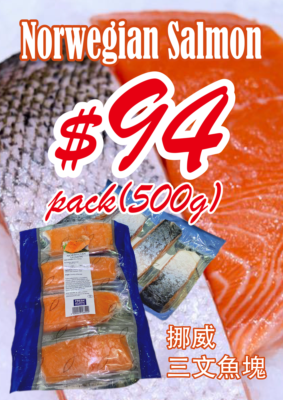 Norwegian salmon$94/pack(500g)